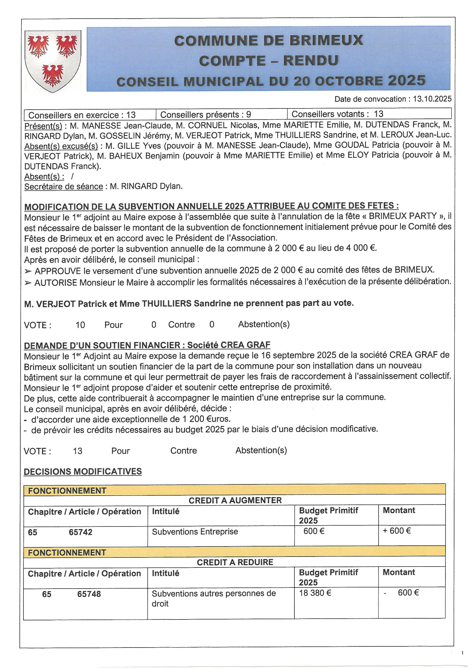 Chères Brimeusoises, chers Brimeusois, chères visiteuses, chers visiteurs.